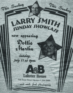 Dottie remembers working a lot of shows with Larry Smith at the Pier House. Larry said, “I have had the great fortune to accompany Dottie Martin for years, and during every performance she has commanded rapt attention from her audience by mesmerizing them in her unique, whisper soft, dignified, understated, fascinating, elegant fashion.”
