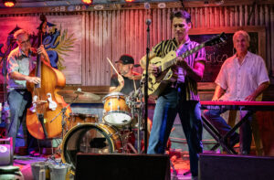 During the COVID recovery period, after vaccines started, Coconut Victrola began a Sunday evening gig at the Higgs Beach Pavilion behind Salute which ran January-May 2021. Owner Richard Hatch beefed up a couple of circuit breakers and placed a long extension chord in the sand from Saluté to the pavilion. It was exactly what Key West needed, and at the right time, an outdoor venue, with plenty of space for “social distancing”, and great music of 1930s jazz, old New Orleans classics, and, of course, 50s Rockabilly.