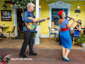 Key West musicians love to play in this cozy venue. Larry Smith, Christine Cordone, Channing Lynn, Barry Cuds, Tony Elitcher, Turner and Rochi Harrison, Joe Dallas, Larry Baeder, Bubba Lownotes, Claire Caplan, Camille Toler, and several jazz specialists, including bassist Geoff Lowe (Chicago). All have enjoyed the stage at Viv. The popularity of VIV was quick, and the schedule has been full of the best of Key West musicians in this unique off Duval music venue. Channing Lynn performed a special Bastille Day gig in 2023 and again in 2024 with Gabriel Wright. Visiting entertainers that hear about ViV are always invited to perform. Everyone wants to play VIV Wine Bistro.